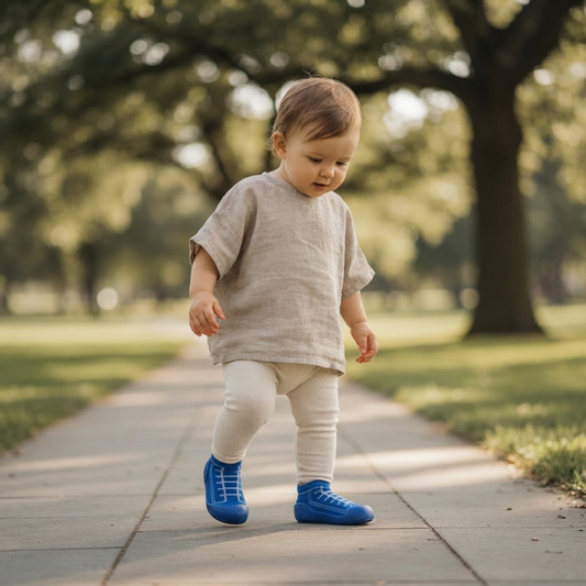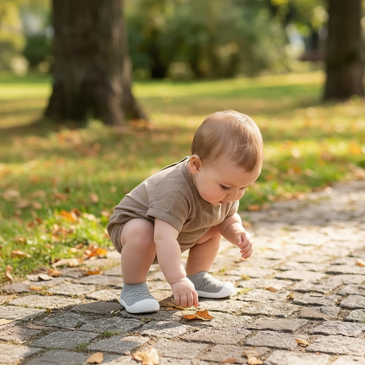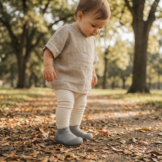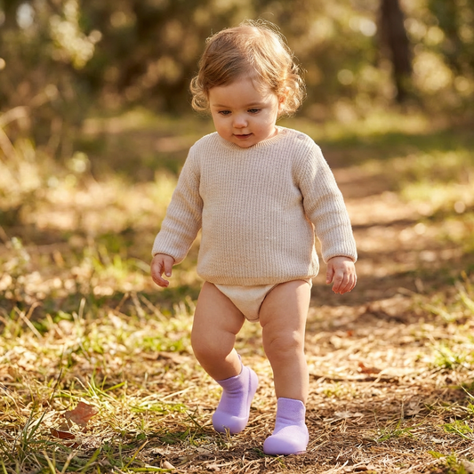 Choosing Sole Sox baby shoes bridges the gap between barefoot development and protective footwear. Halfway between socks and shoes, Sole Sox gives your child the flexibility they crave when they’re exploring and discovering the fascinating world around them. Sole Sox are lightweight, but durable, and can even be worn outdoors. Whether you’re walking on the grass, on concrete, or even playing in the mud, Sole Sox gives your child the freedom to move as though they were barefoot - while giving you the peace of mind that their feet are safe from injury.