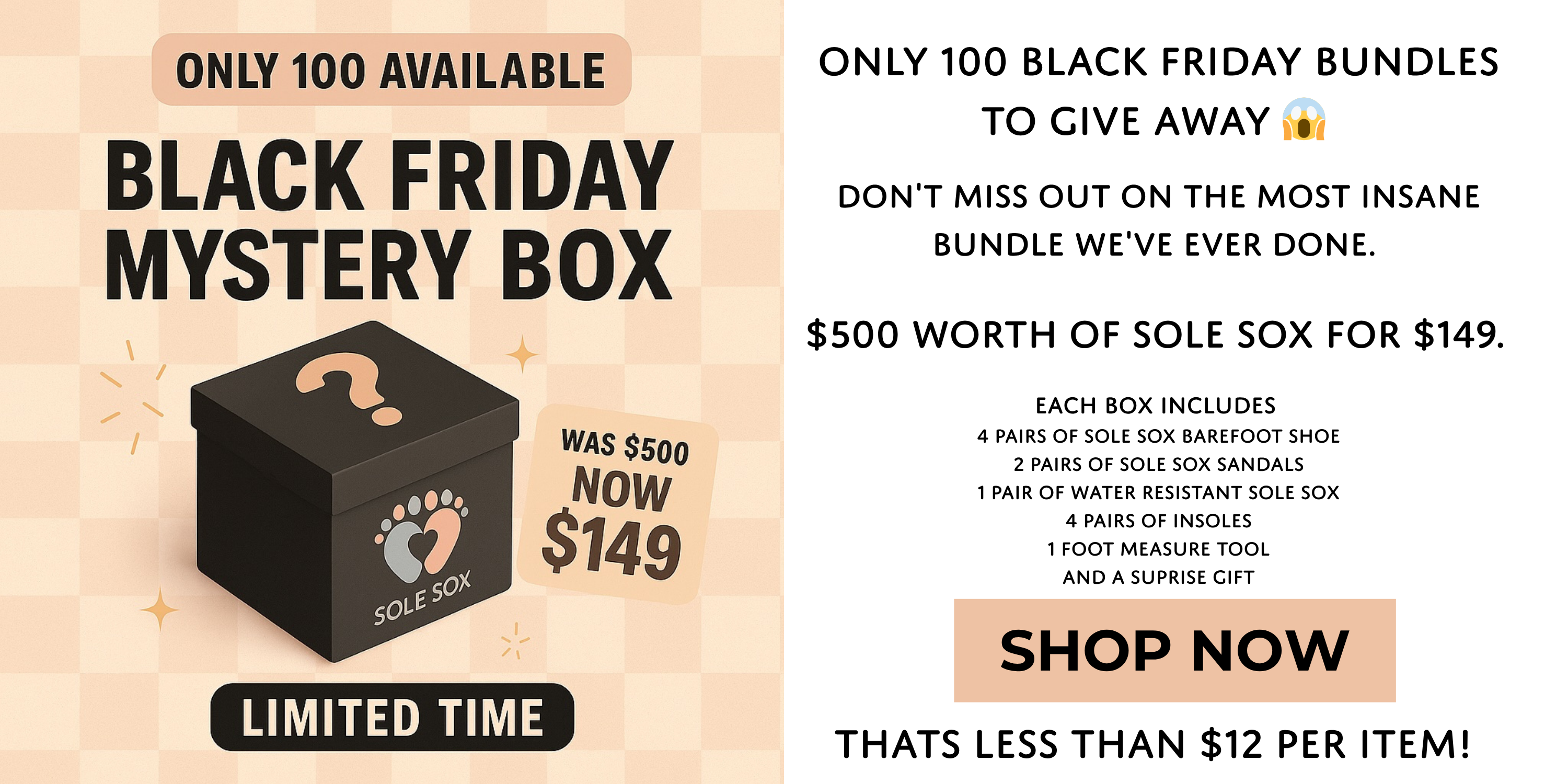 Sole Sox are cotton socks with a light weight, soft & flexible, rubber sole that are designed to mimic barefoot walking. 'Normal' shoes are often tight and uncomfortable, and can significantly impair the natural development of growing feet.