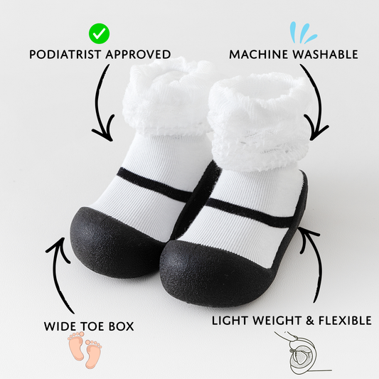 White Lace Sole Sox Baby Shoes