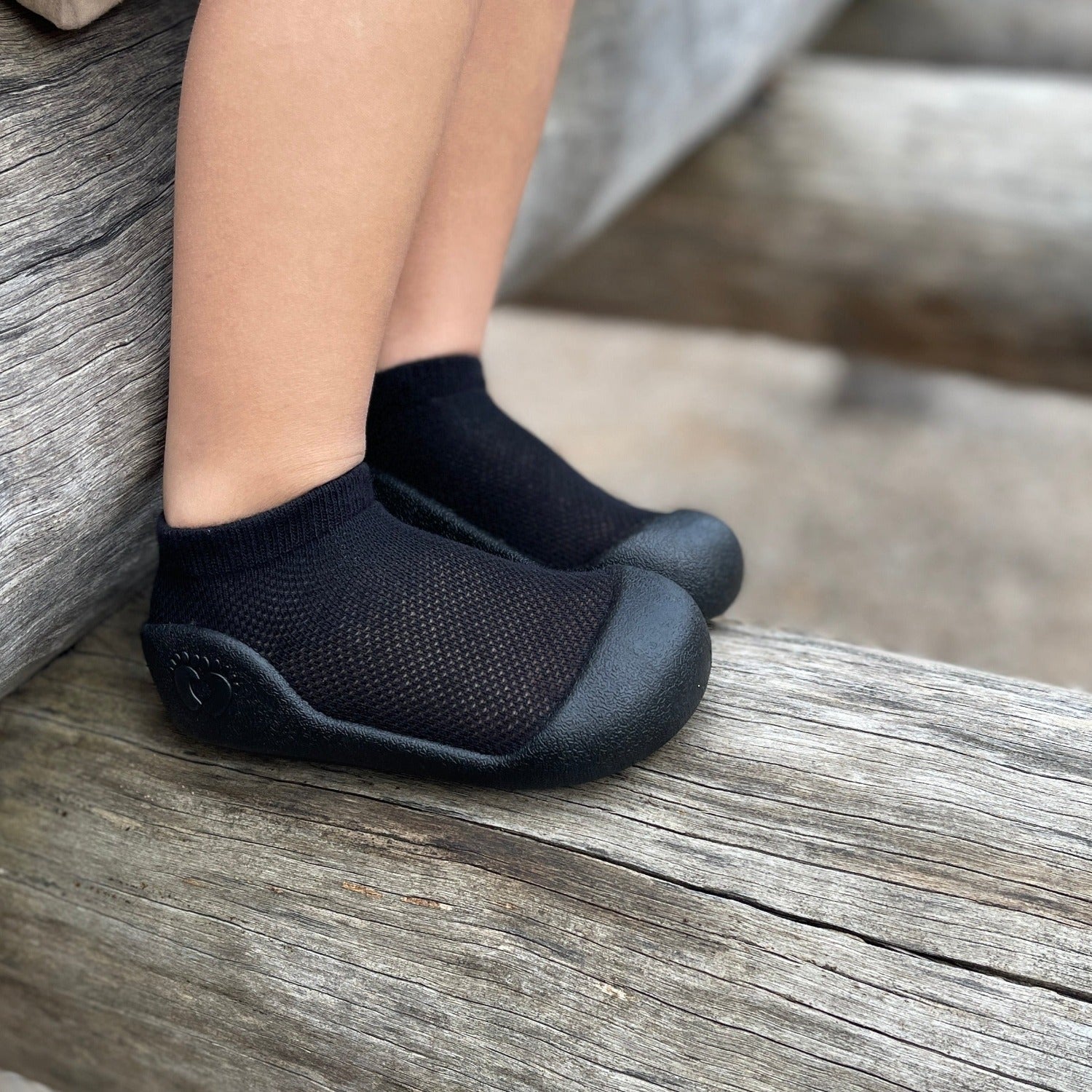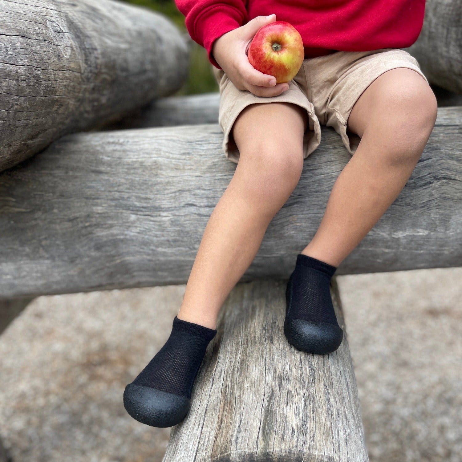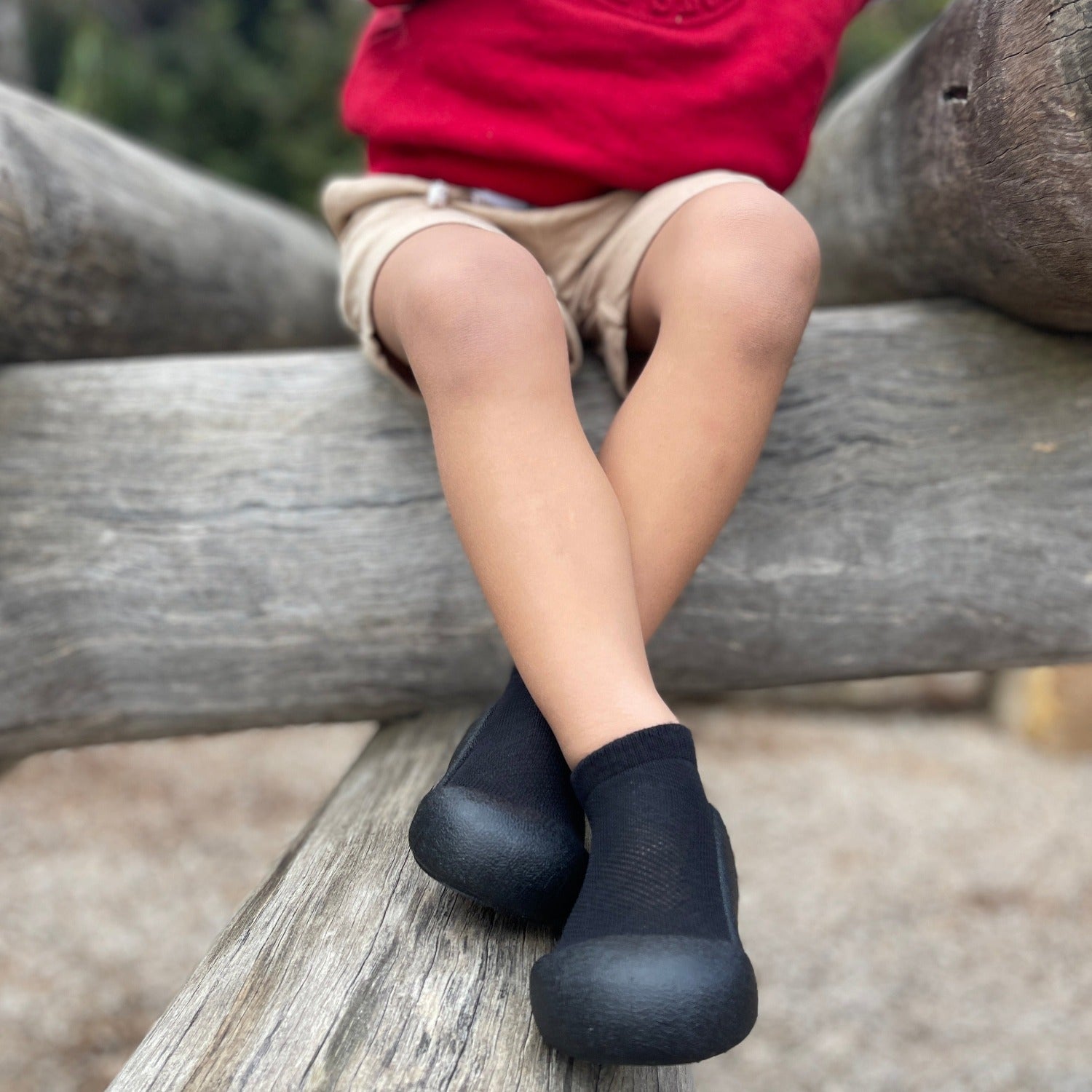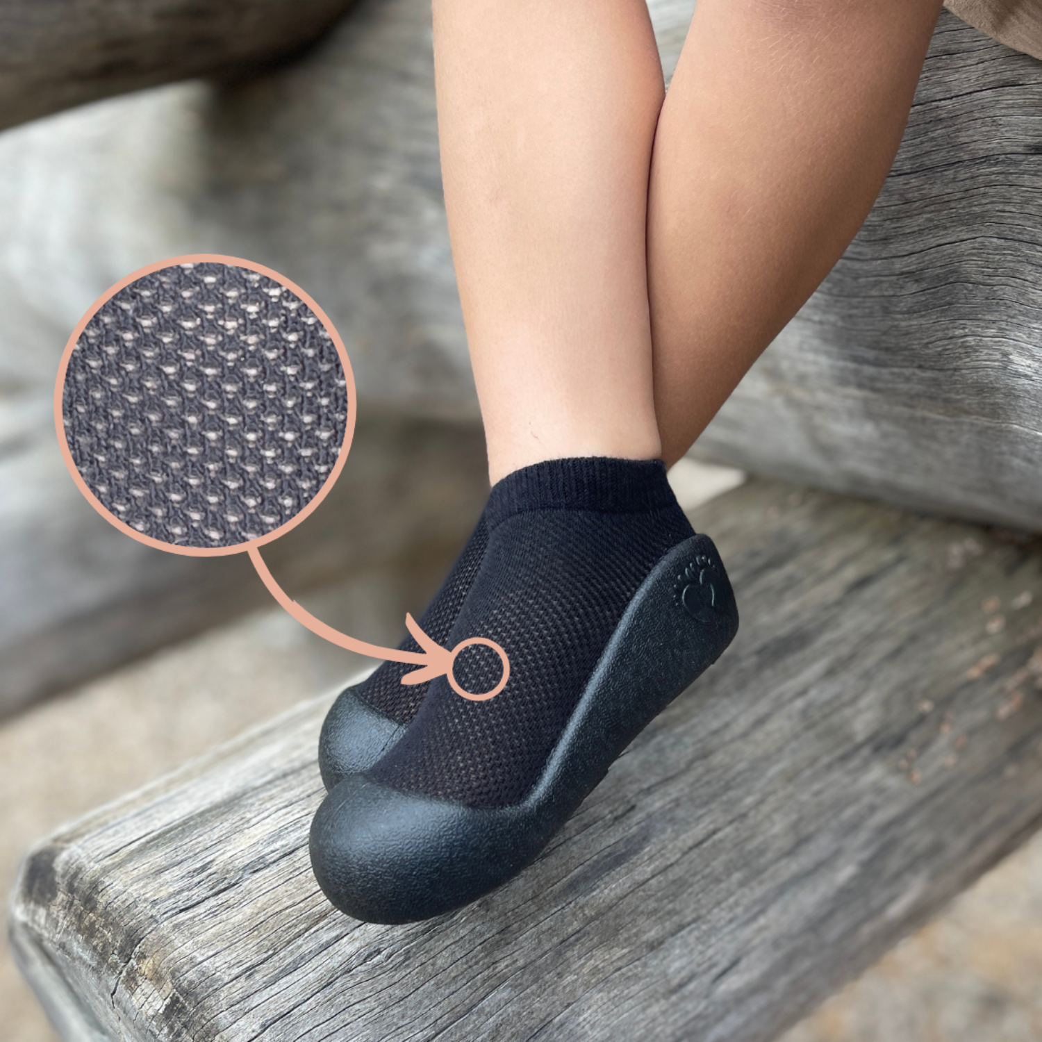 ⭐️⭐️⭐️⭐️⭐️"Absolutely love them. My son always asks to wear them. He’s got a condition called curly toes and these shoes are a godsend for it. So much room for his toes to help the curly toes heal." Mia about Black Cotton Mesh Sole Sox