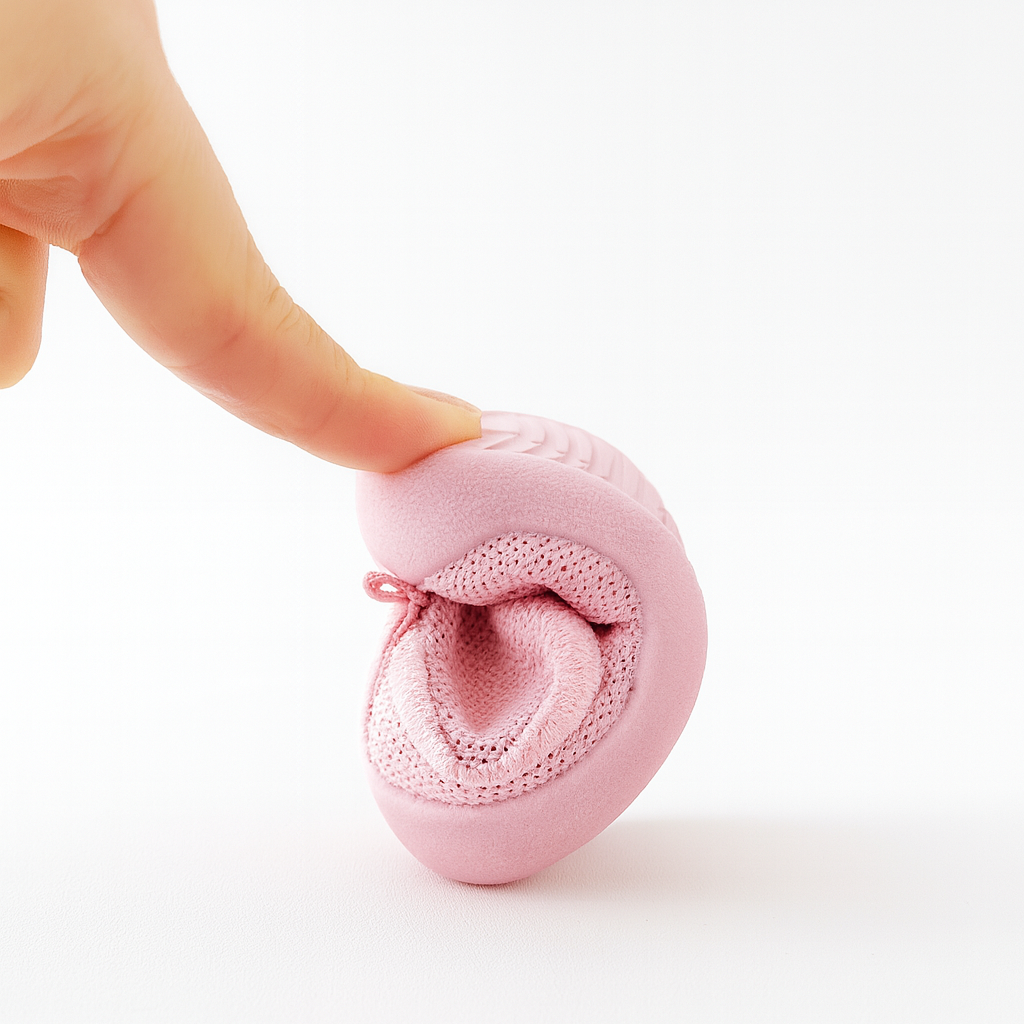Made with Combed Cotton and spandex with a TPR rubber sole, these shoes are soft, sustainable, anti-bacterial and breathable. The bubble toe, flexible anti-slip sole and light weight design simulate barefoot walking. They are designed to be worn with or without sock and are easy to clean. But most importantly, all our products are made from tested non-toxic food grade rubber... just in case your baby wants a bite!